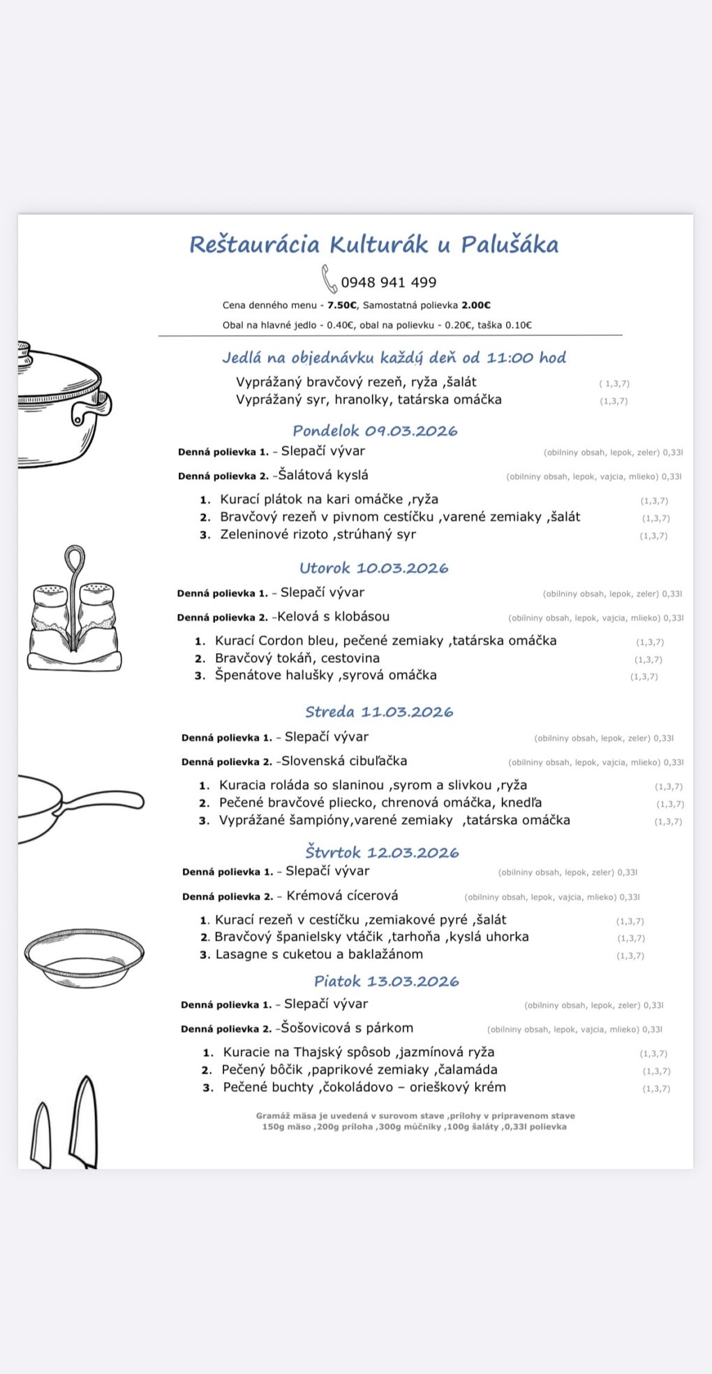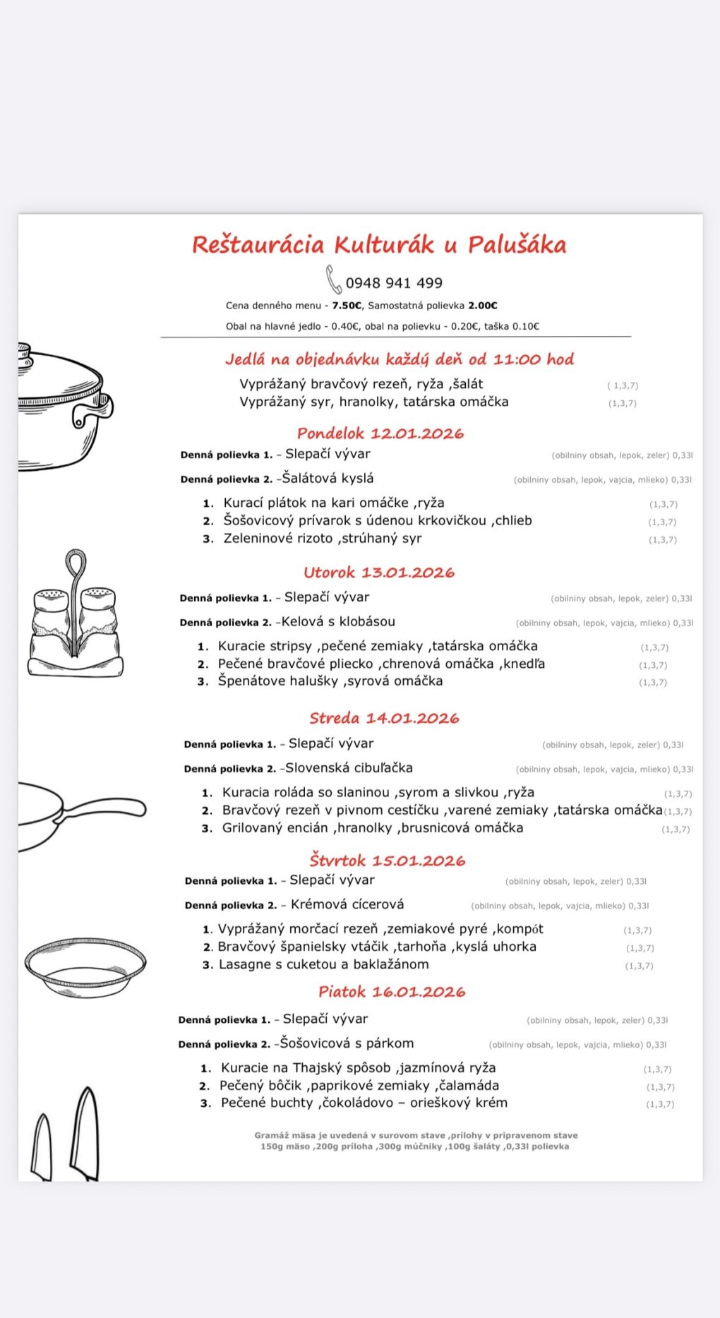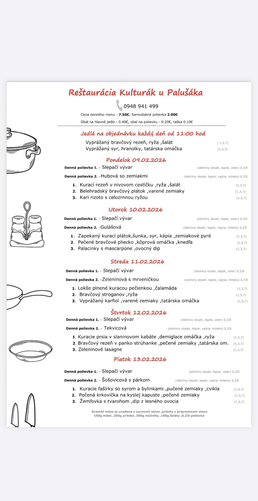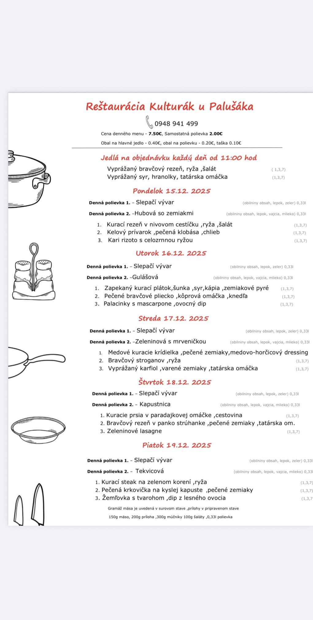 Pokiaľ si obed chcete objednať s donáškou možete volať od 7:00 do 14:00